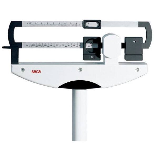 Báscula mecánica de columna, con pesas deslizantes a la altura de los ojos, precisa, robusta y práctica, la nueva seca 700 beneficia a personal sanitario y pacientes por igual.